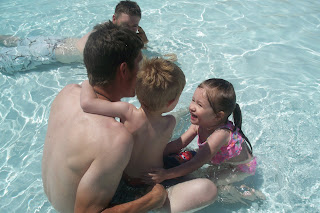 Then, the next day, we went to the rec center pool with everyone that was here on the Wagasky side. I didn't actually swim because I was 3 cm dilated and didn't want to swim in a public pool, but I waded in the water while everyone else swam. Carter was very brave in the water and went under once...he's been experimenting with this in the tub. So, we had to keep a watch on him, but he had a great time with his cousins!